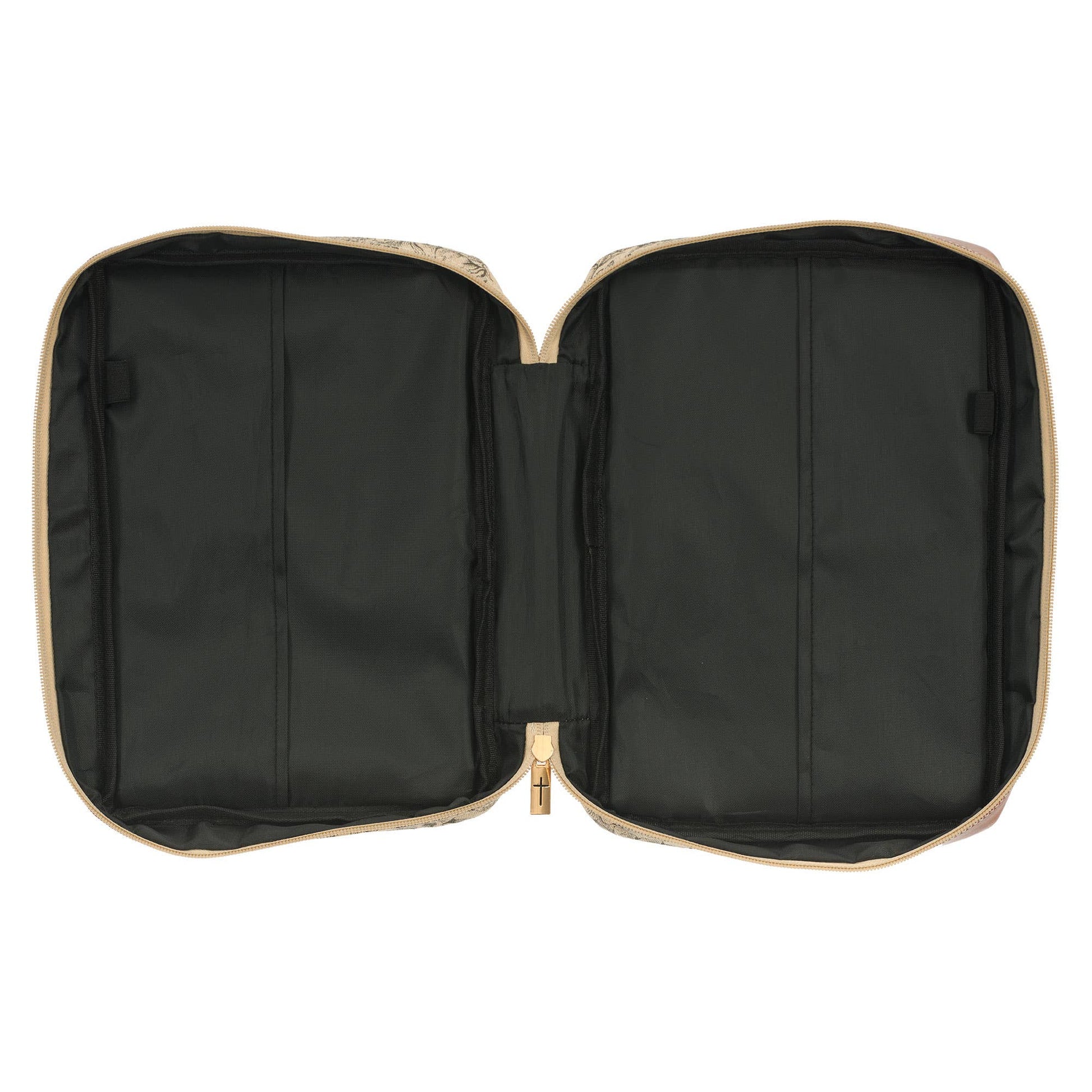 Protect your Bible in a natural canvas Bible case when you keep it inside the Amazing Grace Natural Canvas Bible Cover, a Bible case with a stylish and elegant feel. Black screen-printed floral, Natural canvas, Honey-brown faux leather panel and appliqued patch, Gold-foiled sentiment, Amazing Grace, Amazing Grace Natural Canvas Collection, Fashion Bible cover, Honey-brown faux leather lay-flat carry handle, Gold metal zipper pull, 2 interior pen loops.